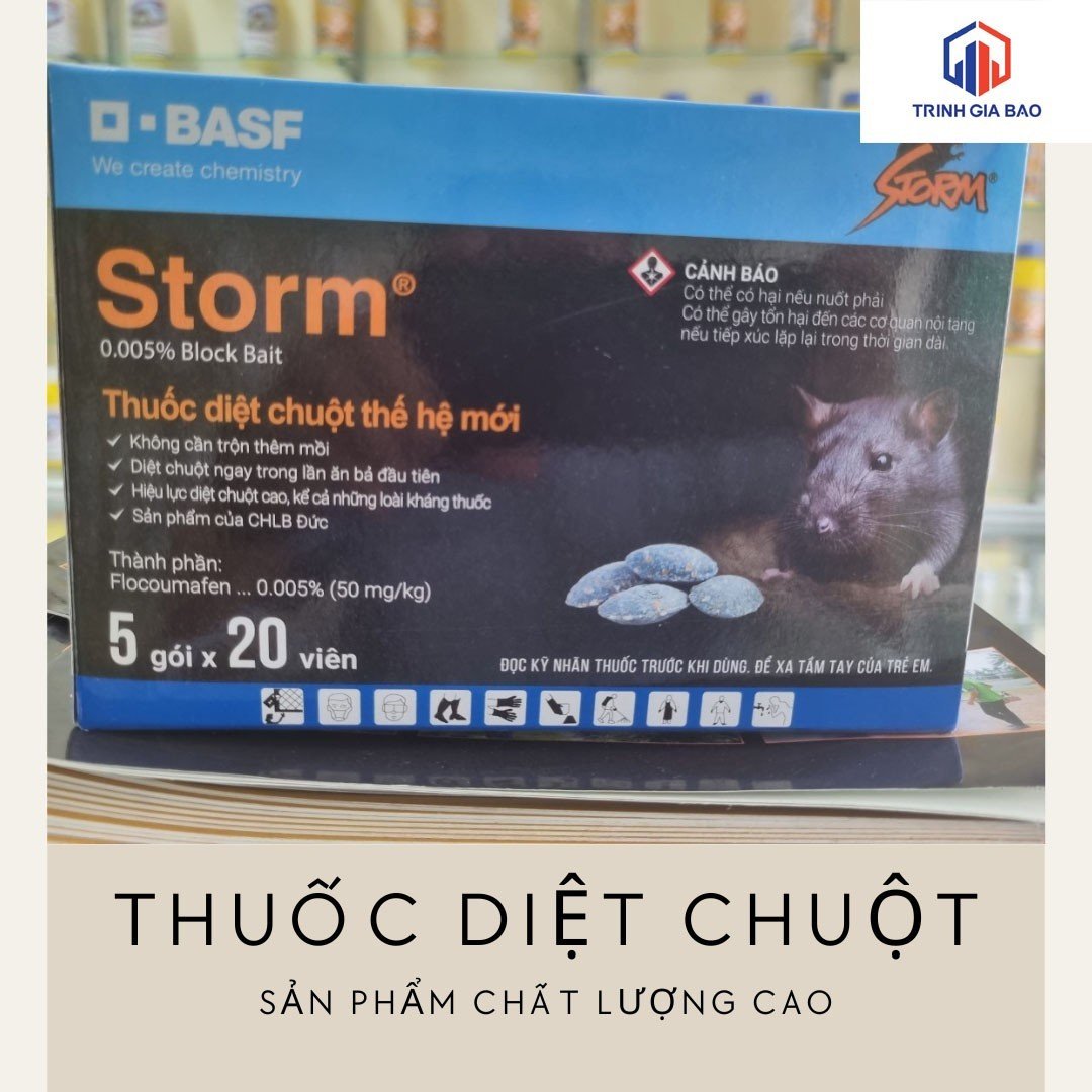 Thuốc diệt chuột Storm là bả trừ chuột chống đông máu thế hệ mới, diệt chuột rất hiệu quả chỉ sau 1 lần ăn mồi. Chuột sẽ chết trong vòng 3-6 ngày sau khi ăn bả.
